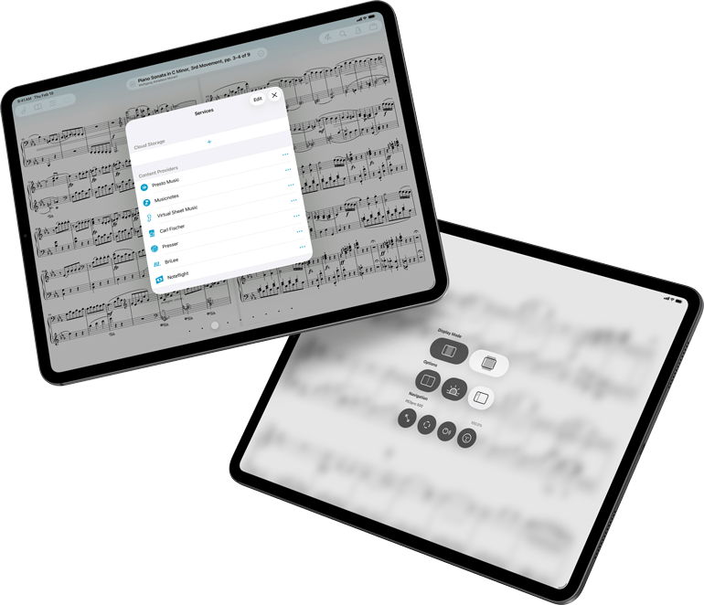 For years, forScore has partnered with content providers to give you easier access to the high-quality digital sheet music you’ve paid for. By signing in to your account with a number of providers, you’re able to see a list of your previous purchases and download them as standard PDF files that work beautifully in forScore. You can even set up automatic downloads so that anything you buy online will be ready for you in forScore without any further action.